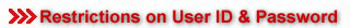 The user ID has to be exactly 8 characters, all small letters and the numbers 0-9. Please do not use special characters such as {-}, {?}, {*}, {&} or {%}, to name a few. Also note that spaces are not allowed in either the user ID or the password. The password is also restricted to exactly 8 characters, consisting of small letters and numbers. The password doesn't require that any of the characters be numbers.